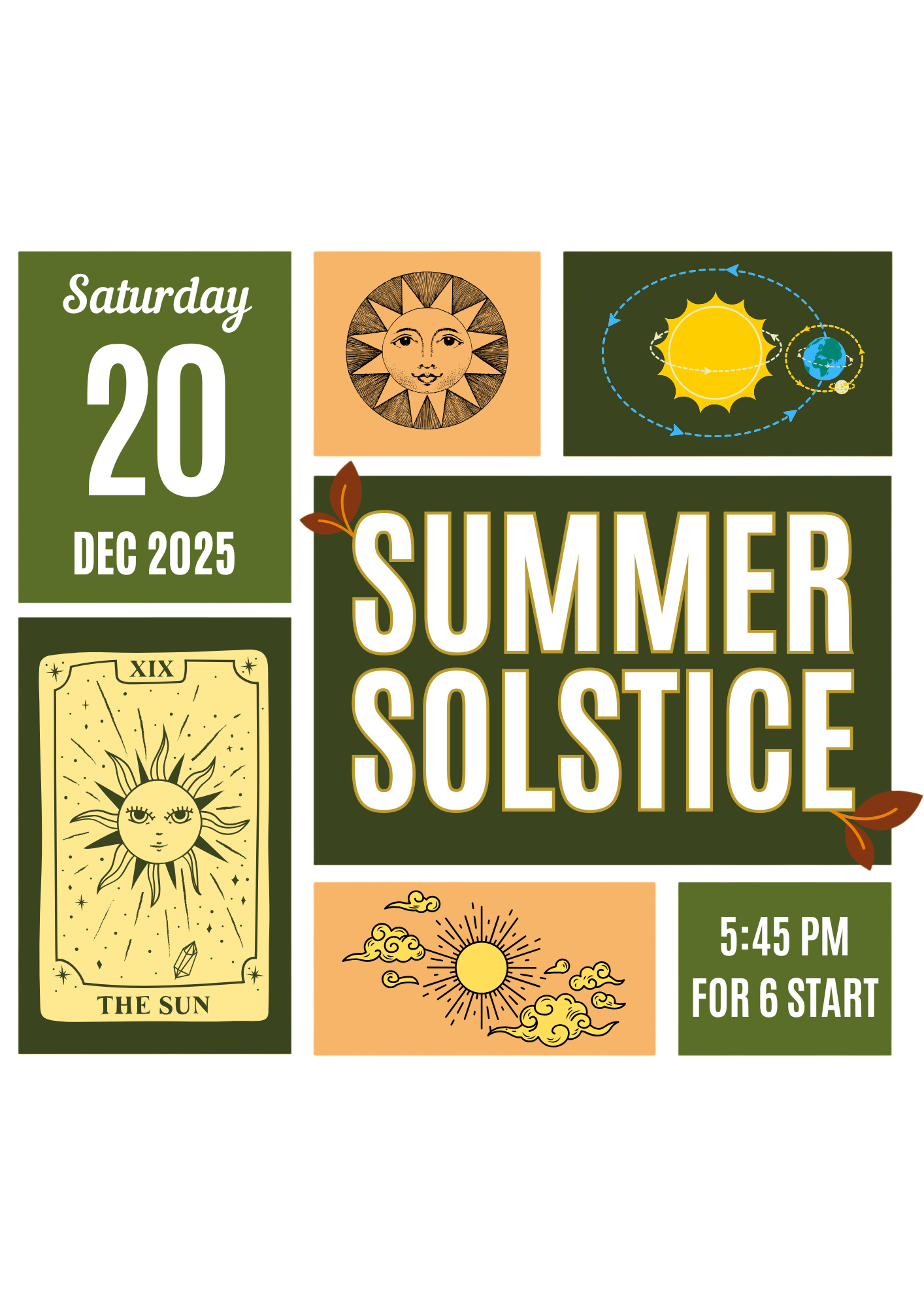 The Summer Solstice Experience is a unique blend of workshop and celebration, inviting participants to deepen their connection with the body, spirit, community, and the surrounding landscape. By integrating ancient therapeutic traditions and contemporary artistic practices, we will cultivate collective warmth and gratitude, creating a ritualistic celebration of the sun at its zenith—this special day when it is closest to the southern hemisphere.
